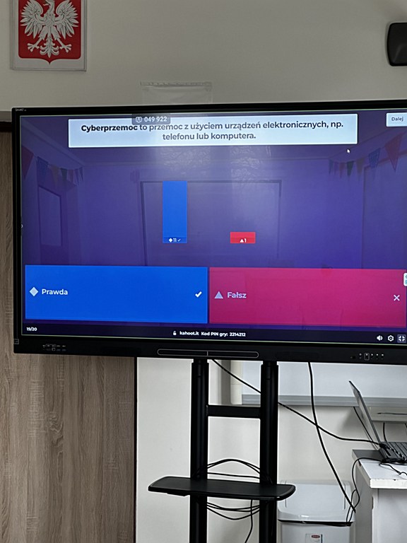 Na lekcjach informatyki klasy 4A, 5A, 6A, 6B, 7A oraz 8A mieli okazję sprawdzić i porównać z rówieśnikami swoją wiedzę z zakresu bezpieczeństwa w sieci. Zaznaczały właściwe odpowiedzi w przygotowanym specjalnie na ten dzień quizie Kahoot, dotyczącym m.in zagrożeń związanych z internetem, korzystania z telefonu i sieci Wi-Fi, cyberprzemocą, wyłudzeniami finansowymi czy zabezpieczeniem komputera i telefonu. Odpowiedzi, które sprawiały wątpliwości były omawiane i wyjaśniane na bieżąco.