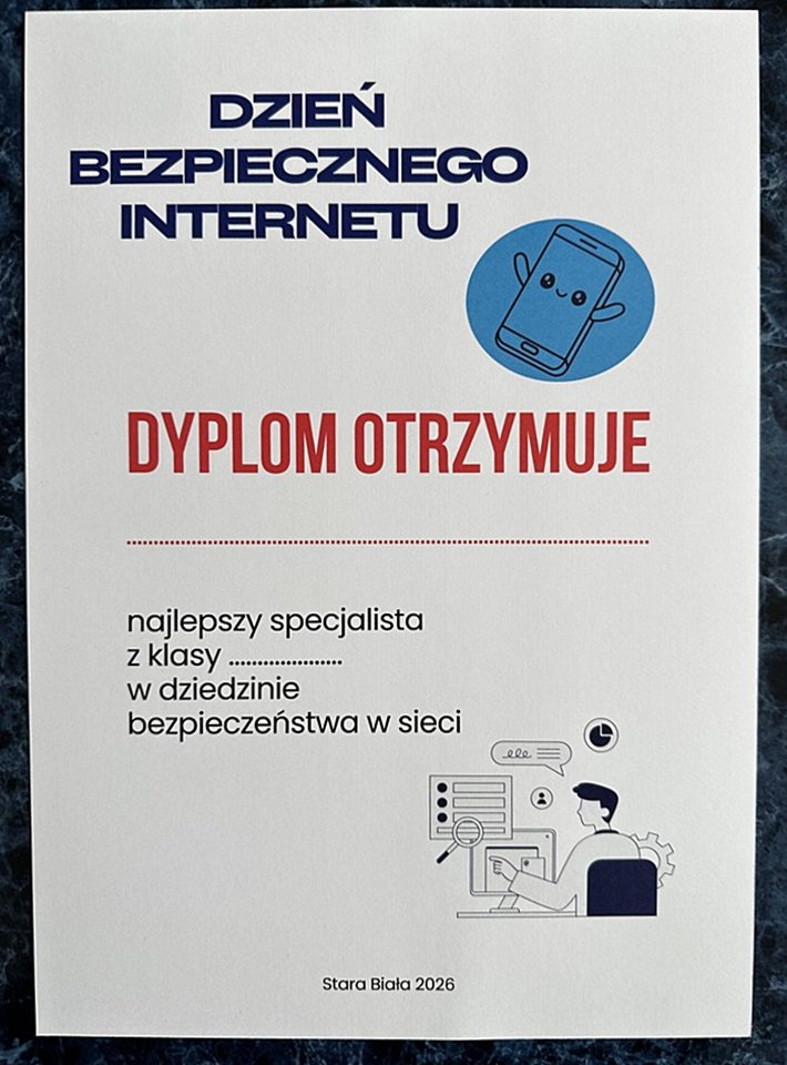 12 lutego 2026 uczniowie Szkoły Podstawowej im. Jana Pawła II w Starej Białej obchodzili Dzień Bezpiecznego Internetu.