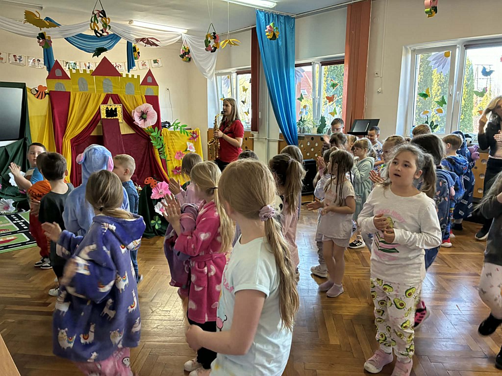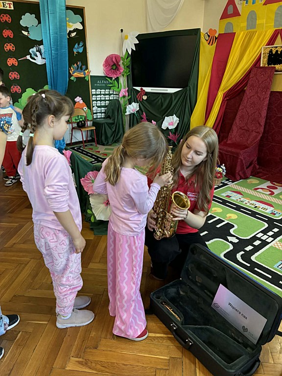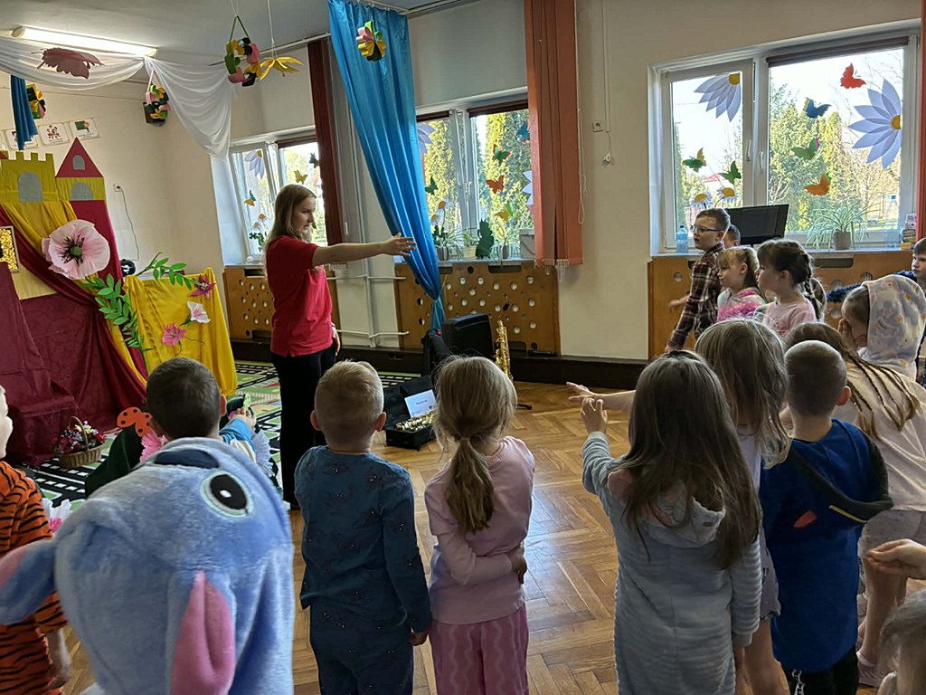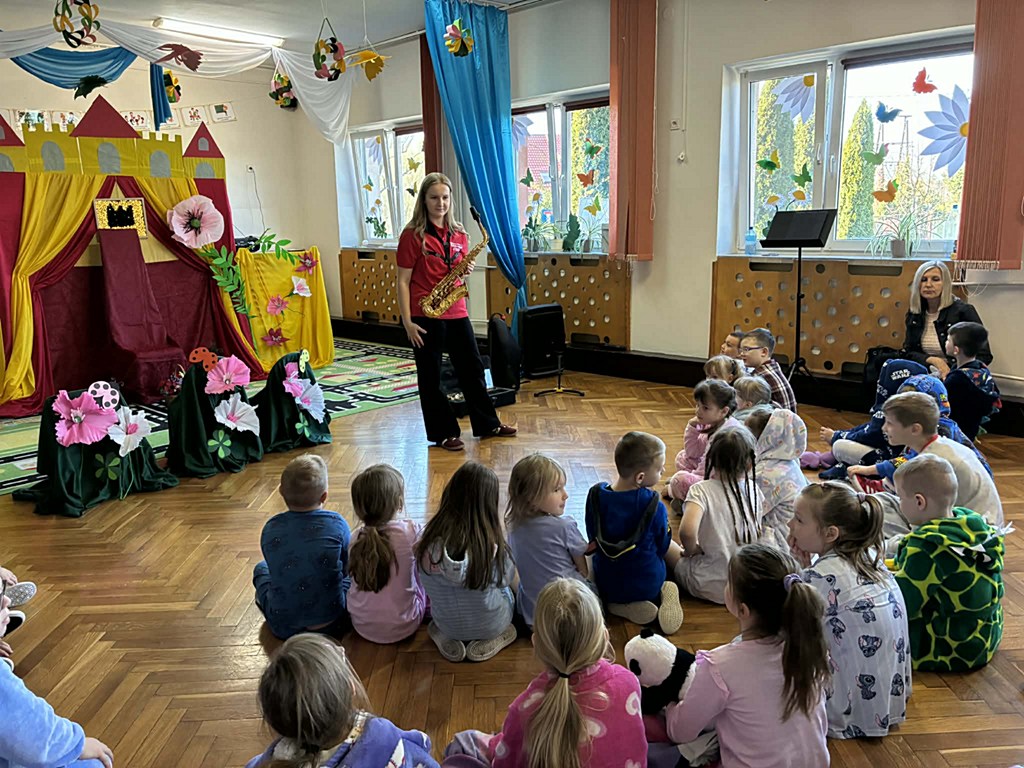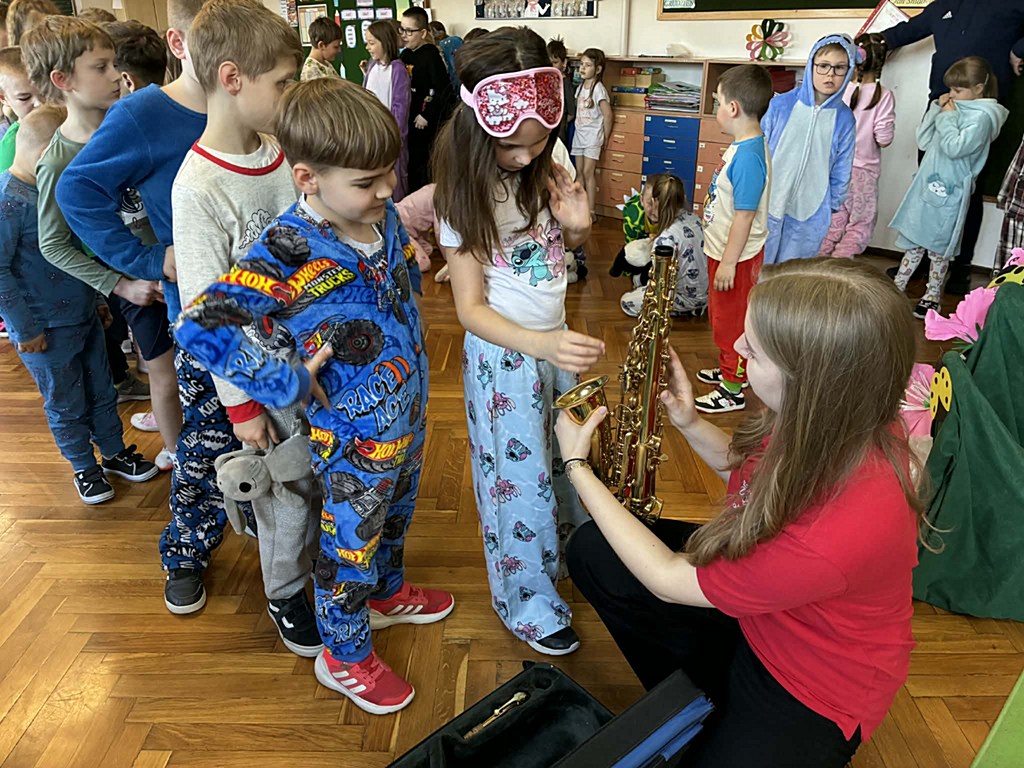 Dzieci miały okazję dowiedzieć się, jak jest on zbudowany oraz jak wydobywa się z niego dźwięk. Uczniowie wzięli także udział w krótkich ćwiczeniach, dzięki którym mogli poczuć, jak ważny jest oddech podczas gry na instrumentach dętych. Najwięcej radości sprawiło jednak wspólne słuchanie melodii – pani grała znane utwory z bajek, a uczniowie z entuzjazmem próbowali je odgadnąć.