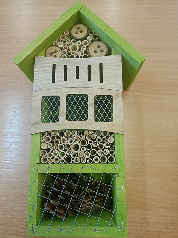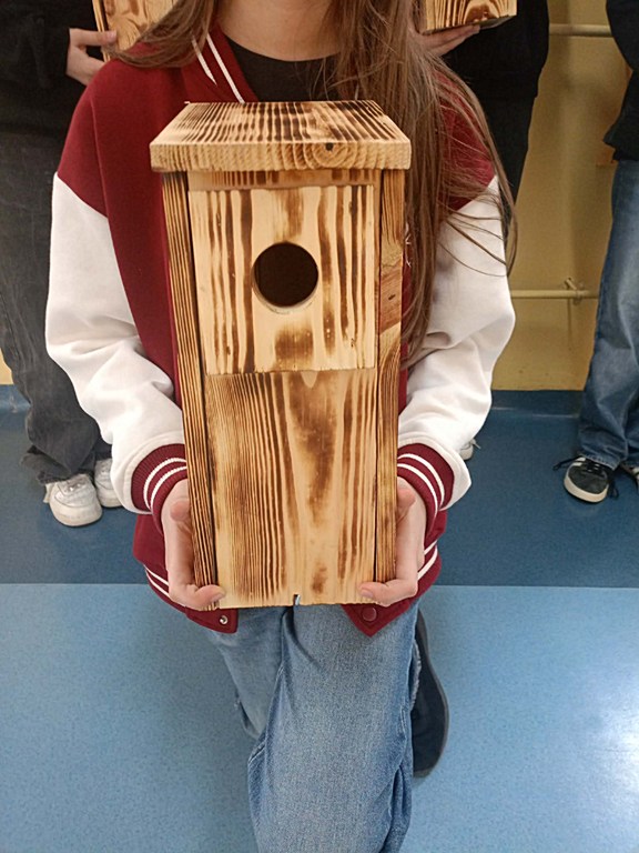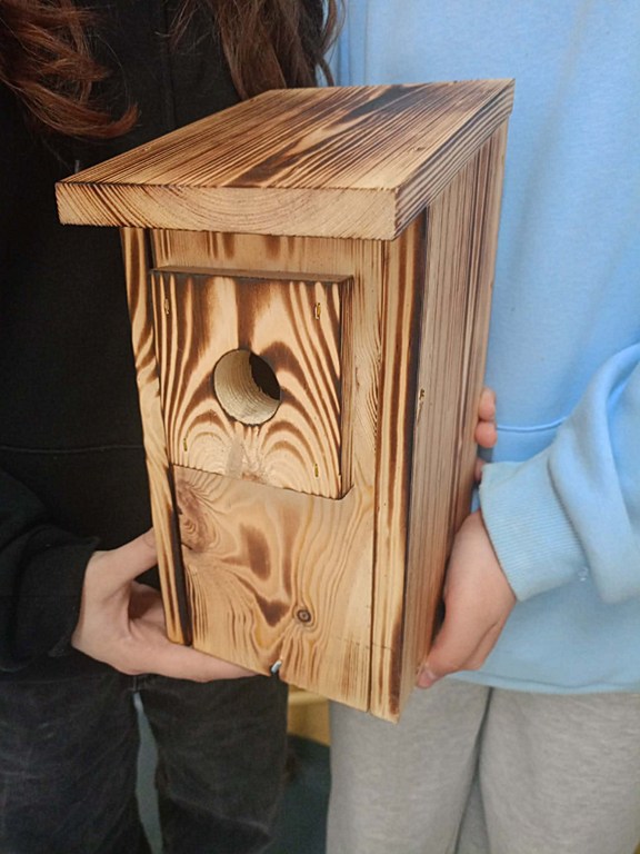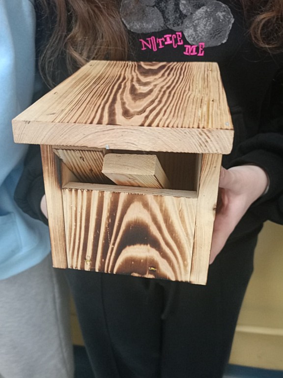Dzięki tym pieniążkom zostały zakupione 4 budki i domek dla owadów. Wszystkie budki zostały już powieszone, a ptaki mogą się cieszyć ze swojego nowego lokum.