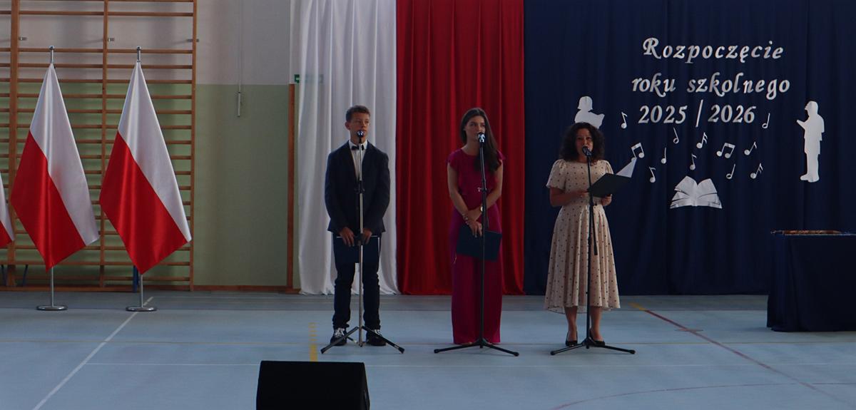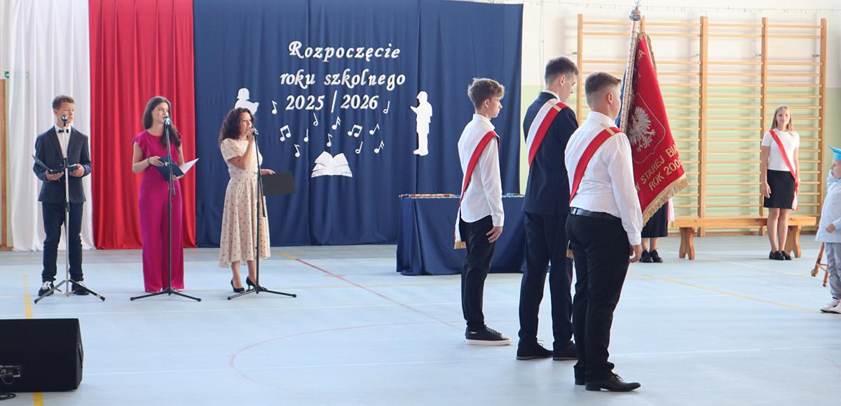 Uroczystość rozpoczęła się od wprowadzenia pocztu sztandarowego oraz wspólnego odśpiewania hymnu państwowego. Następnie wszystkich zgromadzonych serdecznie powitano i złożono życzenia pomyślności w nowym roku szkolnym – zarówno uczniom, jak i rodzicom oraz radzie pedagogicznej.
