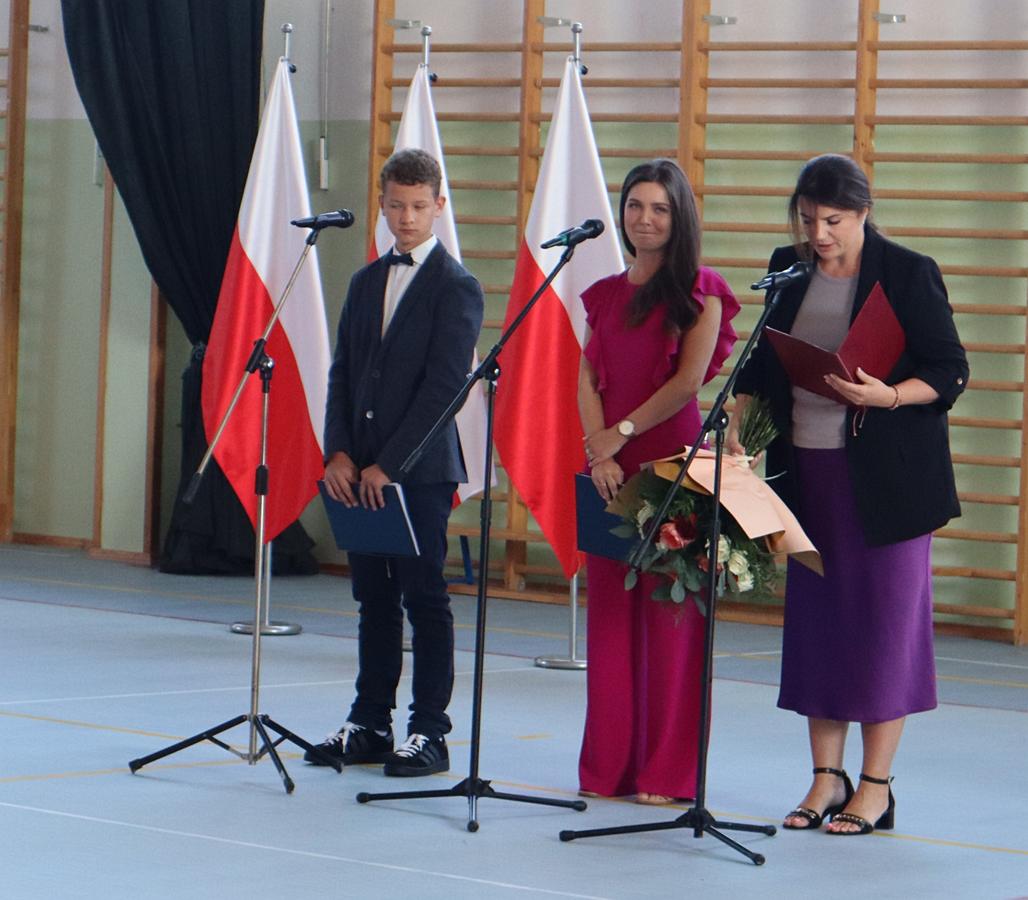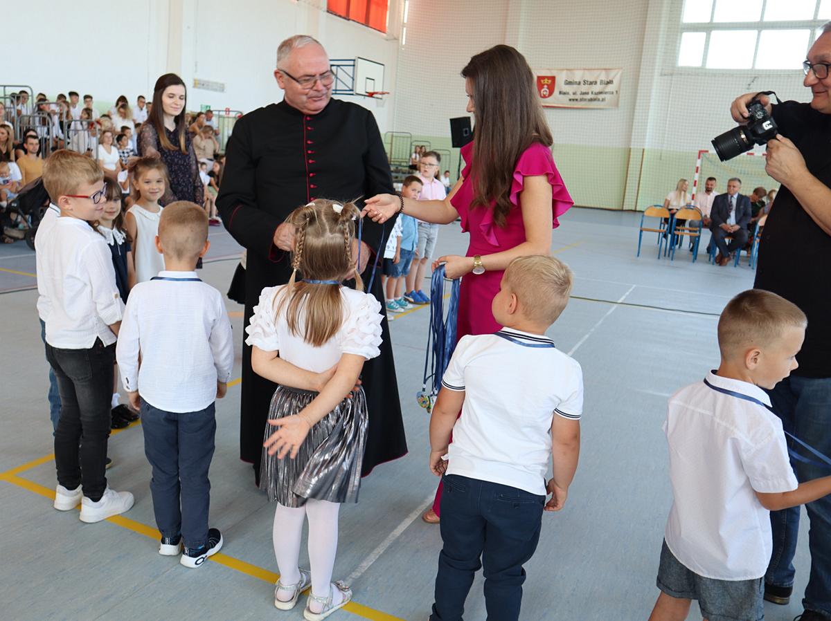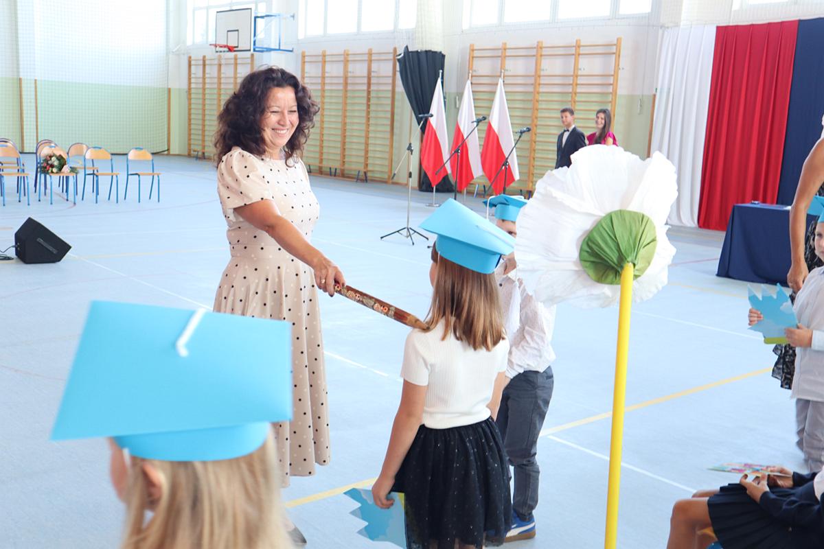Głos zabrała przewodnicząca Rady Rodziców, a następnie pani dyrektor, kierując do społeczności szkolnej ciepłe słowa wsparcia i otuchy. Szczególnie uroczystym momentem było pasowanie i ślubowanie uczniów klas pierwszych. Pierwszoklasiści, składając przysięgę, stali się pełnoprawnymi członkami naszej szkolnej społeczności. Otrzymali także pamiątkowe dyplomy, które będą im przypominały o tym wyjątkowym dniu. Nie zabrakło również powitania najmłodszych – przedszkolaków, którzy otrzymali pamiątkowe medale, symbolizujące początek ich edukacyjnej przygody w naszej placówce. Po części oficjalnej uczniowie wraz z wychowawcami oraz rodzicami udali się do klas na pierwsze spotkania w nowym roku szkolnym. Był to dzień pełen radości i dobrej energii, która – mamy nadzieję – będzie towarzyszyć nam przez cały rok szkolny.