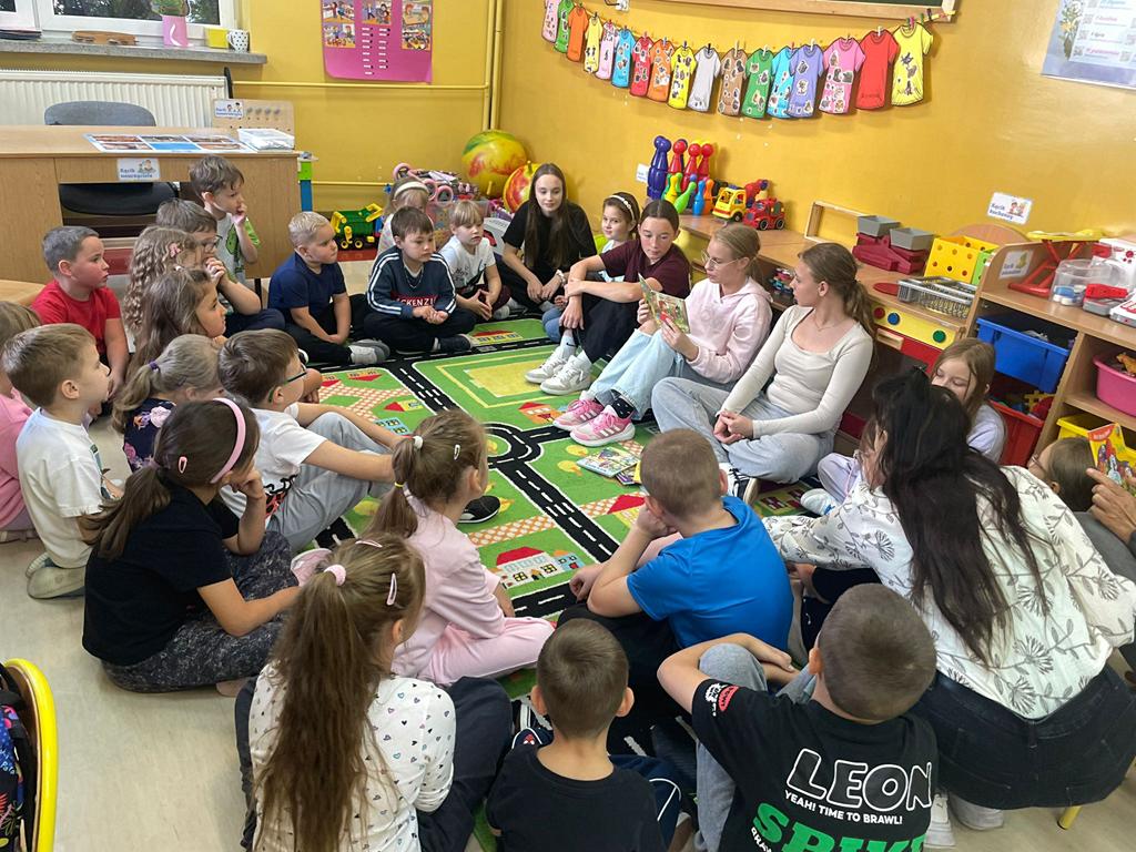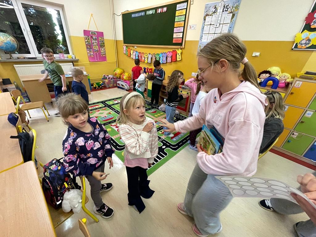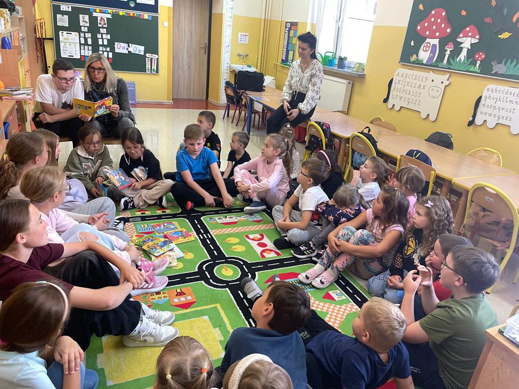 W naszej szkole ten szczególny dzień uczciły uczennice klasy siódmej, które w ramach akcji, czytały przedszkolakom oraz uczniom klasy II, rozmaite bajki, np. Brzydkie Kaczątko, Kot w Butach, Bolek i Lolek, Czerwony Kapturek. Uczniowie słuchali z dużym zaciekawieniem i chętnie odpowiadali na zadawane im pytania.