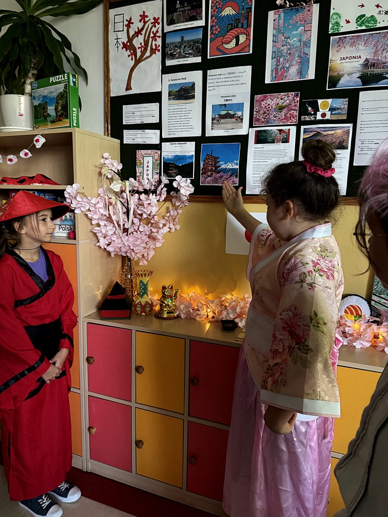 Podczas obchodów uczniowie klas 4-8 przygotowali stoisko prezentujące wybrany kraj. Można było zobaczyć dekoracje, stroje, spróbować tradycyjnych potraw oraz obejrzeć krótkie prezentacje multimedialne i przedstawienie. Młodzi artyści zaprezentowali także piosenki i tańce. Uczniowie w nagrodę otrzymali voucher wycieczkowy oraz przerwę w testach i kartkówkach.