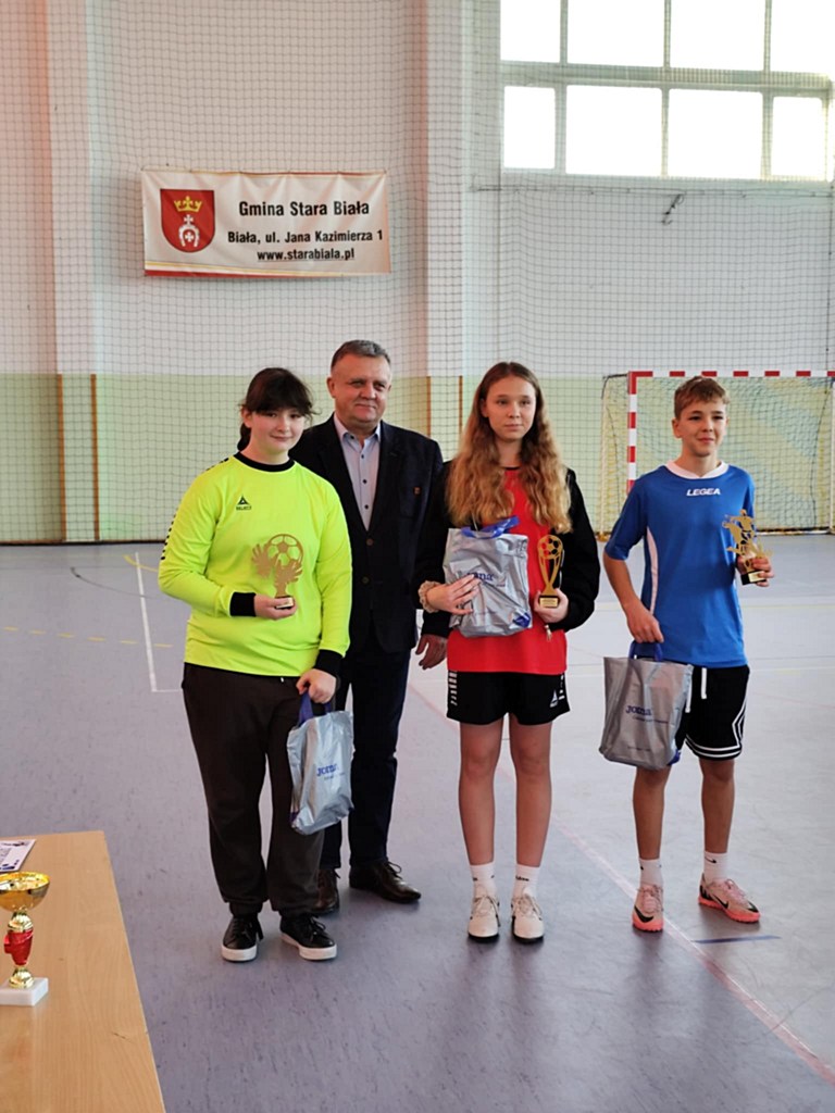 Wymienieni zawodnicy otrzymali statuetki, a wszystkie drużyny puchary i dyplomy, ufundowane przez Wójta Gminy Stara Biała, Pana Sławomira Wawrzyńskiego. Na zakończenie Samorząd Uczniowski wręczył wszystkim wróżby andrzejkowe.