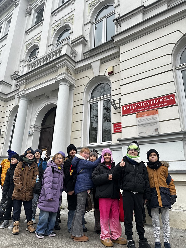 Pierwszego dnia uczniowie odwiedzili Mediatekę oraz Książnicę Płocką. Wyjazd rozpoczął się od projekcji świątecznego filmu animowanego „Rudolf – Czerwononosy Renifer”, który wprowadził dzieci w bożonarodzeniowy nastrój i pozwolił im poczuć magię zbliżających się świąt. Następnie dzieci zwiedzały gmach Książnicy, zaglądając do jej zakątków i zakamarków, odwiedzając czytelnię oraz wypożyczalnię. Uczniowie poznali zasady korzystania z biblioteki, dowiedzieli się, jak wypożyczać książki oraz jak dbać o księgozbiór. W czytelni wykonywali przygotowane zadania, które rozwijały ich umiejętność pracy z książką, koncentrację oraz współpracę w grupie. Na zakończenie wizyty każdy uczeń stworzył własną przypinkę, co było doskonałą okazją do rozwijania kreatywności i zdolności manualnych.
