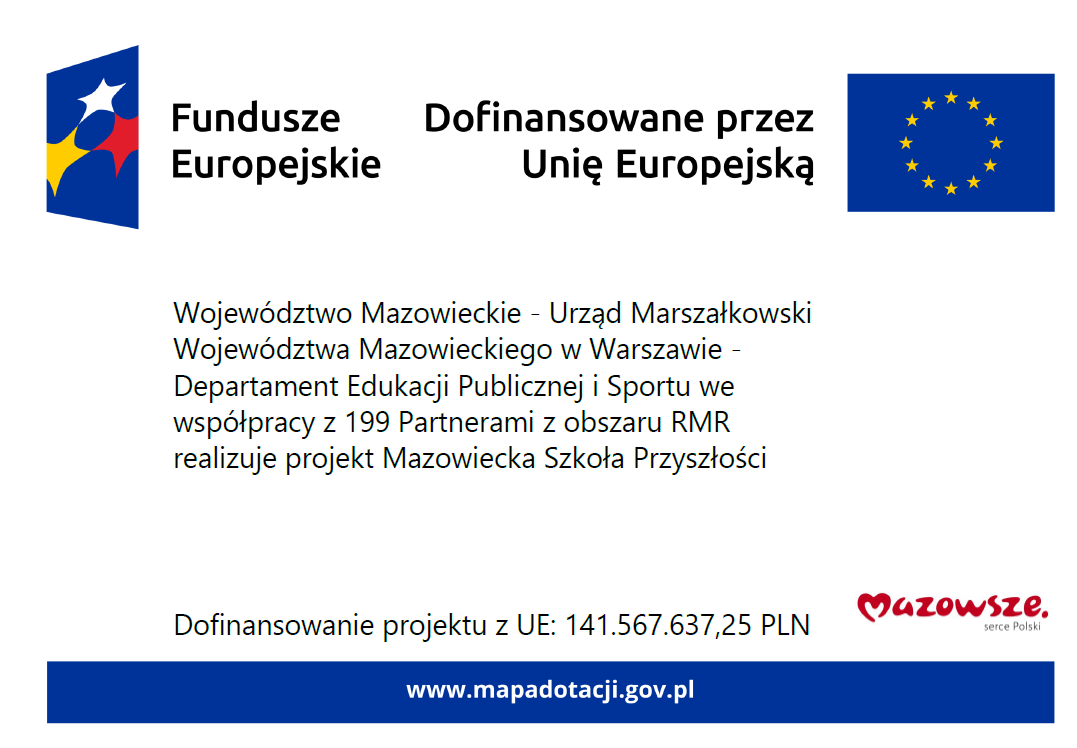 Projekt: „Mazowiecka Szkoła Przyszłości” uzyskał dofinansowanie oraz został zatwierdzony do realizacji na obszarze Regionu Mazowieckiego Regionalnego.